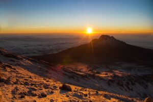 Then you start a more difficult hike to Karanga Camp, which features numerous ascents and descents during the route, but don’t worry: our guides are experts at choosing an optimal pace for the group. After reaching the camp you will be offered warm lunch. After a couple of hours you will have to complete ascend to Barafu Camp (4,640 m) where you will be served a hot dinner. It is better to spend the remainder of the day resting and sleeping before night summiting.