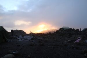 Guests are supplied with mattresses and pillows, but sleeping bags are still required. The huts have communal dining halls and basic washrooms, ranging from flushing toilets and running water at the lower huts to long drop toilets and buckets of water at Kibo Hut. Also available for consumption are soft drinks, bottled water, and beer (not included in price hereunder).